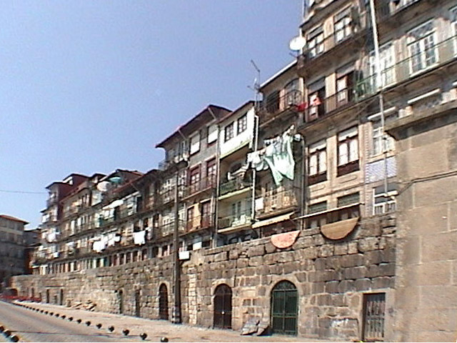 Driving into this city is a nightmare worse than Napoli. The entire streets are being torn up and almost everything is one-way. After several circlings and being prevented from going down the final street by some jam up, we go the wrong way on a one-way and reach the Mecure Hotel in Pra�a Batalha (bah-tahl-ya). What a dirty filthy decaying city this is. To me this is a pig sty only a bit better than Catania in Sicily. I find nothing nice about any of it. After checking into the hotel so late, I do my run down the steep Janiero Street past the S�o Bento train station around the main Pra�a on Avenida Aliando straight down to the Douro River. Everything is dark, dirty and depressing. Even the river front, Ribiera District, which according to the guide books is where the restaurants are, is absolutely horrible. It all made me a little nervous out there by myself late at night but I climbed all the way back up to the hotel. Since we were tired and it was late, we followed the recommendation of the hotel guy and went to a depressing little flea-bag place in town. We thought we would get sick eating there but we ordered Frango (Portuguese roasted chicken) and it was absolutely fantastic, one of the best meals on the trip and it cost practically nothing. We hiked our way back to the hotel and got to bed about 1:30 AM.