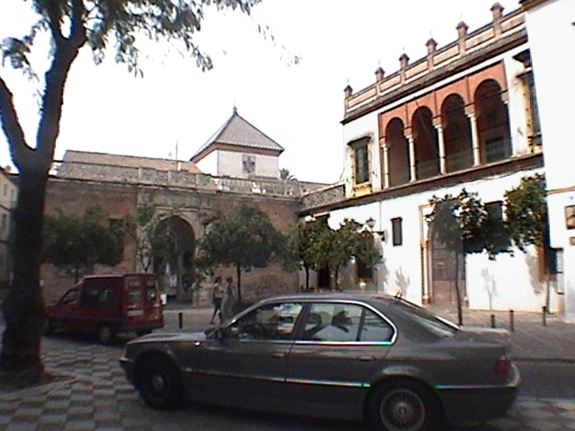Woke at 9:30 and went out to run at 11:30. I expected it to get hot here as well but it was slightly overcast with a nice breeze. The streets here are very large and busy so I decided I had better run in the little park next door called Jardins de Catrina. The soft dirt was good on my knees. I finally maneuvered my way through the streets and found the major thing here, the Cathedral of Sevilla, which is larger than that of Milano and only second to St. Peter's. They claim it is the largest cathedral in the world. It took me quite a while to walk around it and photograph it. The tower attached is called the Giralda because of the weather vane at the top. It was originally a Moorish minaret. I left there and started hunting for an internet cafe and was led to the Alfalfa 10 cafe which again wouldn't allow use of a floppy so I kept looking. After wandering through the really wonderful streets covered with linens to keep the sun out, I arrived in Plaza Nueva covered in marble. At one corner is the Hotel Ingleterra and they pointed me in the right direction to a real good place Netsk@fe so I wouldn't have to hike all the way across the river to Tequila Connection. I enjoyed my cortado (getting used to them now) while doing email. Got a lot done and caught a cab back to the hotel. Marcia was just finishing her lunch in the hotel (Ouch$$!!) and after changing we headed for the Cathedral to tour the inside. We took a cab the 4 blocks because it was already 4PM and it closes at 5.