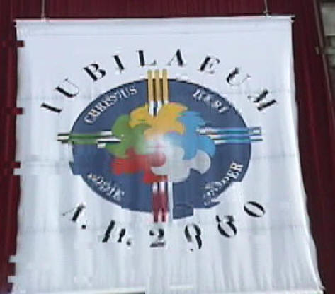 Above the main door of the Duomo was a large white banner (see above) proclaiming the 2000 Jubilaeum which Rudy had a hard time seeing in the glare of the sun.