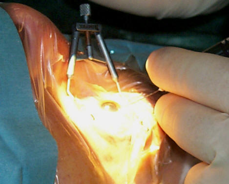 At 11:00 we started surgery. Dimitrii first did a PRL implantation on a Polish patient I had referred to him and then Rudy was brought in. First he did the right eye and made an incision so he could slide out the ICL that Dr. Roberto Zaldavar had implanted (see Diario #1.) Then he inserted the PRL without a problem. He is a superb surgeon. He then repeated the same procedure on the left eye. This is a rare time in these Diarios where I show a peak into my world of eye surgery. I had my camera and I got a few shots of the surgery.