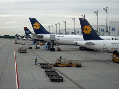 Look at those cute little towns down there. We taxied up and joined all the other Lufthansa planes at the gates. I thought the painting on the AirBerlin plane was interesting.