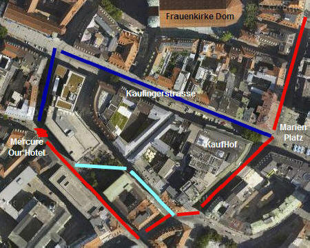 The route we take through Kaufingerstra�e is shown in blue