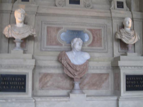 The walls of the hall were covered with busts of all the Roman Emperors, e.g. Trajan is the bust on the far right.