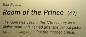 Below left is the beautiful cabinet in the panorama above. The painting of the Prince on the ceiling is below right.