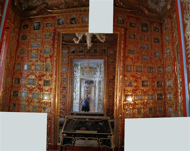 This photostitch is chopped up because it was the only way to give some impression of the end of this ornate room.
