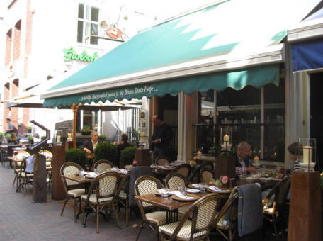 Our dinners were all OK, but not fabulous. Amsterdam has not been lauded for the quality of its restaurants. They gave us a complimentary glass of limoncello (below left) and we got a chance to talk with the owners, Chef Simon, who is from near Venezia, and his wife Claire (below right.) They were very nice but because of the high price of the wine, the zucchini flower and especially the salty (then later dry) main course, I don't think we would go back.