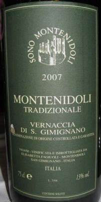 We first looked at their wine menu (below,) and as you can see, one of my favorite Italian wines, Vernaccia di San Gimignano, was the cheapest on the list at �36 ($51,) which is rather high since we pay no more than $10 for it at home. Marcia and I enjoyed this one by Solo Montenidoli, 2007.