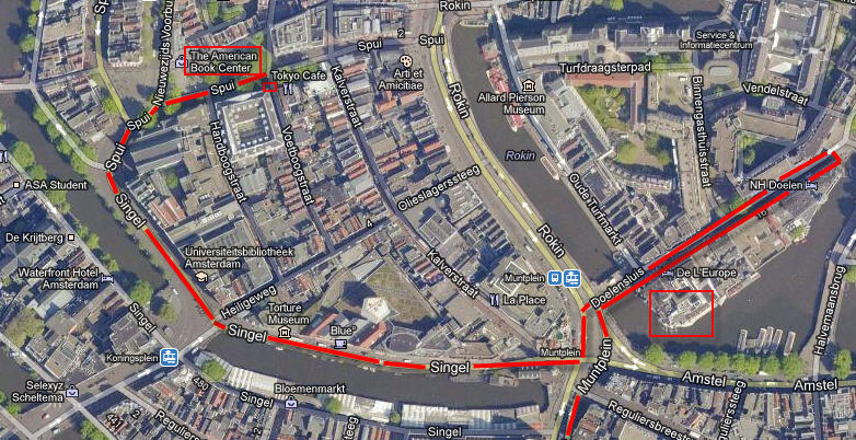 map, you can see the church I am heading for, De Krijtberg on the left bank of