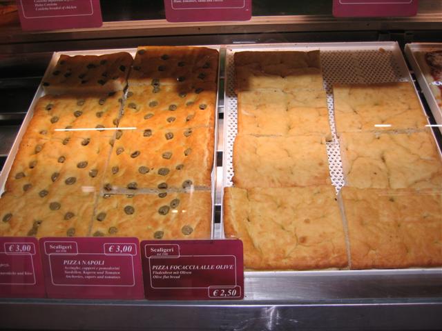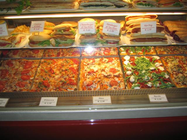 It is very hard to pass up some of the pizza, pannini and foccacio bread displays as you walk through the streets.