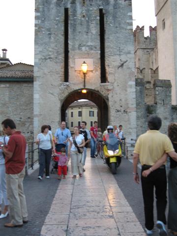 Your car has to drive across this little moat bridge to get inside the town.  You have to fight your way past the people and the motor bikes.  They only let you drive in if you have a hotel room.  Once inside, this is the little piazza that awaits you.