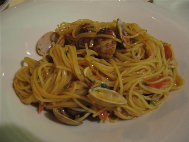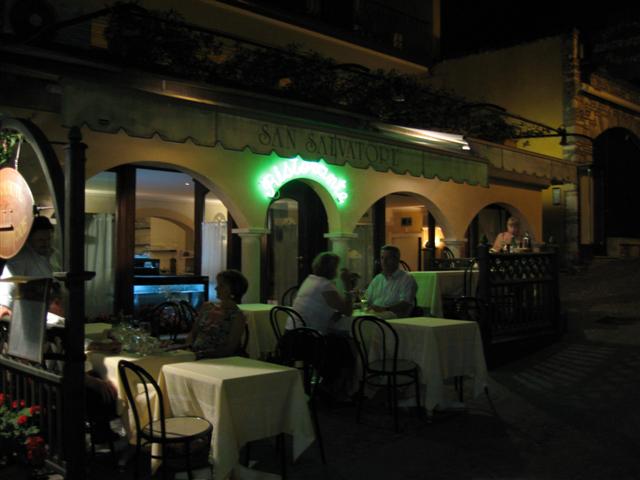 I met Marcia at the lakeside hotel cafe and then we headed for dinner.  We decided it was time to start trying some new places.  We decided on Ristorante San Salvatore [Via San Salvatore, 5, +39-030-916-248].  It was a lovely evening and we sat in one of their outside tables.  I had had so much to eat last night that I decided to take it lighter tonight.  We again had Vernacia di San Gimingnano which at �7 is cheaper than I can by it in the wine store at home.  The Euro may have gone up, but good Italian wine is still a bargain even in an Italian tourist site.  Marcia started out with a dish of avocado and prawns for antipasto followed by trout and I had simply spaghetti vongole.  It was all excellent.  Click on the photos.